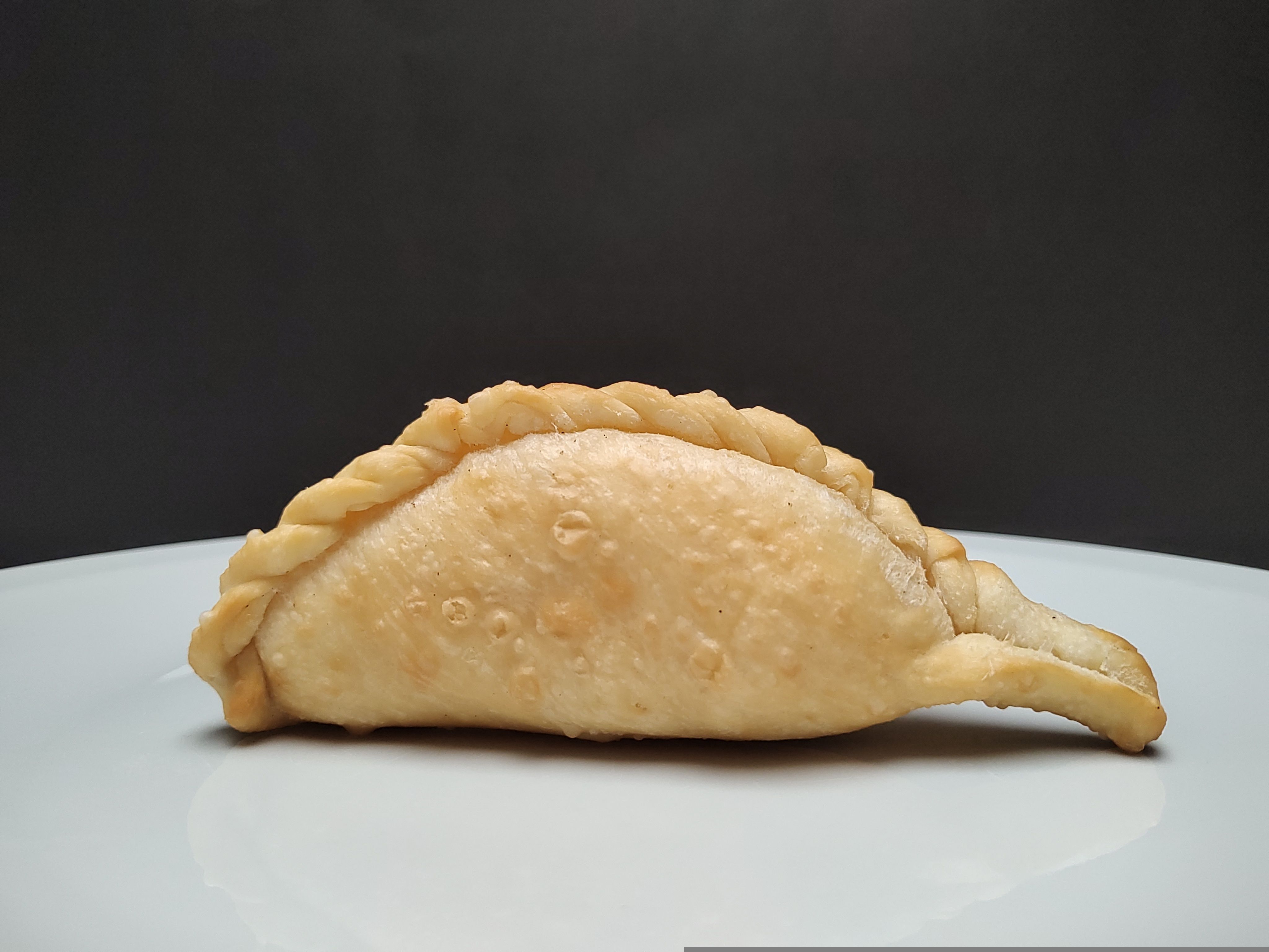 Empanada de carne cortada a cuchillo frita en grasa de pella, hecha con masa casera. Peso de la empanada 110 g.